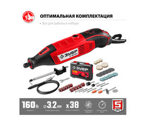 ЗУБР 160 Вт, d 3.2 мм, 41 предмет, электрический гравер, кейс (ЗГ-160 КН41)