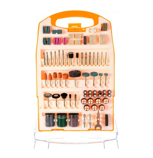 Набор насадок для гравера DEKO DH188 (188 предметов) в кейсе включает в себя: Шлифовальный круг из карбида кремния D20 x d2 x 3-8 шт Шлифовальный круг из оксида алюминия D20 x d2 x 3 - 6 шт Масляный точильный камень 25 x 9 x 9 - 1 шт Пулевидная войлочная шарошка - 1 шт Абразивный круг D20 - 30 шт Войлочный полировальный круг D 1/2" - 8 шт Резиновый полировальный круг D22 x d2 x 3- 2 шт Войлочный полировальный круг D 1" - 4 шт Алмазная шарошка - 4 шт Фреза по дереву- 2 шт Оправка для шлифовальной ленты D 1/4" -1 шт Оправка для шлифовальной ленты D 1/2" -1 шт Оправка для отрезных кругов -1 шт Оправка для войлочных кругов -1 шт Свёрла (d1; d2; d3 ) - 6 шт Шлифовальный круг из карбида кремния с оправкой - 4 шт Лепестковый абразивный круг с оправкой - 1 шт Шарошки абразивные -5 шт Концевая металлическая щётка- 3 шт Радиальная металлическая щётка-2 шт Полировальная паста- 1 шт Гаечный ключ -1 шт Цанга(d1. d2. d3. d4 )- 4 шт Абразивная шлифовальная втулка D 1/4" -12 шт Абразивная шлифовальная втулка D 1/2" -7 шт Отрезной абразивный круг d 32- 5 шт Мелкозернистый отрезной абразивный круг d 24- 36 шт Среднезернистый отрезной абразивный круг d 24- 31 шт 2 000,00 ₽ / шт
