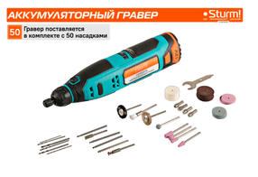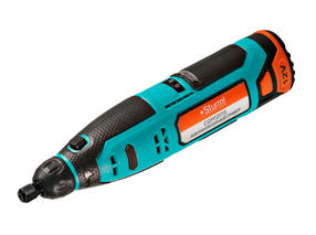 Гравер аккумуляторный Sturm! CGM1201S — это профессиональный беспроводной гравер в удобном кейсе с набором насадок. Он идеально подходит для гравировки, удаления покрытий, выполнения тонких пропилов и полировки ювелирных изделий. Эргономичный корпус из прочного пластика обеспечивает долгую и комфортную работу в любых условиях эксплуатации и лучший контроль над инструментом благодаря малому весу и удобной для обхвата форме. Регулируемая в диапазоне 5000-25000 об/мин скорость обеспечивают хороший контроль при работе с различными материалами. Производительный и компактный двигатель обеспечивает ровное поступательное ведение инструмента и позволяет уверенно производить обработку сложных поверхностей с достойным качеством. Система крепления насадок с использованием пяти диаметров фиксирующей цанги 1,2/1,4/1,8/2,4/3,2 мм облегчает подбор оснастки и значительно расширяет диапазон применения инструмента. Данная модель является частью системы 1BatterySystem12V и совместима со всей линейкой аккумуляторного инструмента. В комплект входит 1 аккумулятор емкостью 2.0 Ач и зарядное устройство, что позволяет быстро заряжать инструмент и продолжать работу без перерывов. Гравер поставляется в комплекте с 50 насадками, которые позволяют работать с различными материалами и выполнять различные задачи. 4 990,00 ₽ / шт