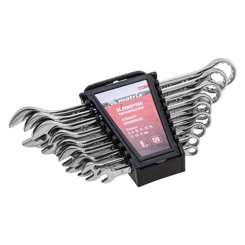 Набор ключей комбинированных, 6-22 мм, 9 шт, CrV, полированный хром Matrix 15424