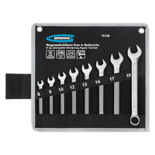 Набор ключей комбинированных 8-19 мм, 8 шт, CrV, холодный штамп Gross15148