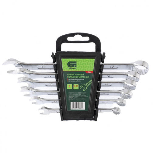 Набор ключей комбинированных, 8 - 17 мм, CrV, 6 шт.//СИБРТЕХ 15446