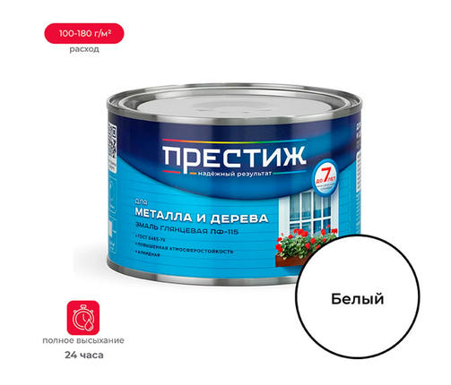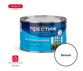 Эмаль ПРЕСТИЖ алкидная глянцевая ПФ-115 атмосферостойкая белая 0,4 кг