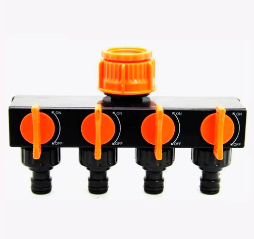 Планка – адаптер распределительная с 4-мя запорными кранами выполнена из высококачественного и ударопрочного пластика ABS. Данная модель предназначена для разветвления системы полива, если вы используете только один источник подачи воды. Подсоединяется к резьбовым кранам, трубам, которые имеют наружную резьбу 3/4" – 1". Четыре независимых запорных крана позволяют автономно управлять поливочными линиями, и независимо регулировать подачу воды. Легко устанавливается и не требует использования инструментов. Планка – адаптер соединяется к коннекторам со шлангом по системе быстрого соединения, также коллектор имеет четыре выхода с наружной резьбой 3/4"(без адаптеров). 560,00 ₽ / шт