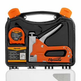 Набор Sparta 42003 состоит из мебельного регулируемого степлера, совместимого с крепежами типа 53 размером 4-14 мм, 500 скоб и рулетки с длиной ленты 2 м. Они позволяют измерять и закреплять на деревянном основании оргалит, фанеру, ДСП, ДВП, пленку, утеплитель и другие листовые материалы. Штампованный стальной корпус степлера устойчив к деформации, поэтому инструмент прослужит долго. Набор будет полезен для сборки и перетяжки мебели, укладки напольных покрытий и монтажа теплоизоляционного материала. Подходит для бытового применения. Технические характеристики набора SPARTA 42003 Подходящая расходка скобы Тип скоб 53/A Материал корпуса сталь Удлиненный "носик" нет Функция повторного удара нет Индикатор замены скоб есть Скобозабивной-молоток нет Регулировка силы удара есть Тип инструмента степлер Вместимость магазина (скобы) 500 шт Размер скоб 8-11.3 мм Вес нетто 0.9 кг 1 033,00 ₽ / шт