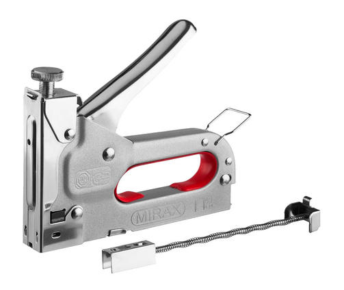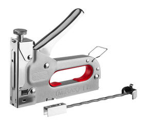 Стальной степлер MIRAX X-53 тип 53, 3144 широко применяется на производстве мебели. Корпус выполнен из металла, что гарантирует надежность и долговечность. Предусмотрена регулировка силы удара, поэтому можно работать с материалами различной твердости. 950,00 ₽ / шт