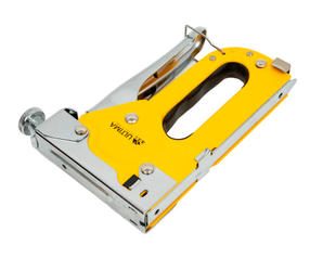 Степлер предназначен для быстрого крепления листового материала (оргалита, фанеры, ДСП, ДВП, пленки, утеплителя) к деревянному основанию. Изготовлен из стали методом штамповки. Есть плавная регулировка силы удара, для контроля глубины забивания скобы. 800,00 ₽ / шт