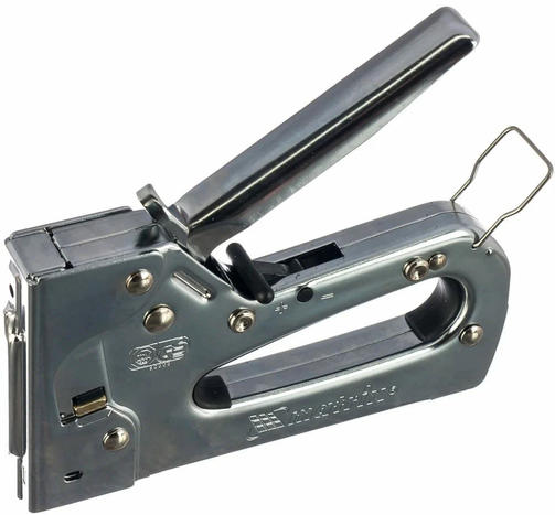 Металлический мебельный степлер Matrix 40913 — инструмент с регулируемой мощностью удара, применяемый для закрепления листовых материалов на деревянных основаниях при помощи скоб типа 53 размером 6-14 мм. Подходит для работы с фанерой, оргалитом, ДВП, ДСП, пленкой и утеплителем. Продуманная конструкция позволяет быстро загружать скобы в скобоприемник, экономя время мастера. Рессорная пружина обеспечивает плавность работы. Степлер используют при сборке шкафов, обивке мягкой мебели, укладке ковровых покрытий и при выполнении прочих крепежных работ. Преимущества Стальной корпус, изготовленный методом штамповки, обеспечивает надежность конструкции. Двухпозиционный переключатель позволяет регулировать силу удара в зависимости от плотности скрепляемых материалов и глубины забивания скобы. Хромированное покрытие корпуса предохраняет инструмент от ржавчины. Резиновая вставка на внутренней поверхности рукоятки обеспечивает надежный хват. Скоба-фиксатор удерживает рукоятку в нерабочем положении, предотвращая случайное срабатывание механизма во время транспортировки или хранения. Степлер изготовлен в Тайване на высокотехнологичном оборудовании и прошел строгий контроль качества, что подтверждает его надежность. 1 534,00 ₽ / шт