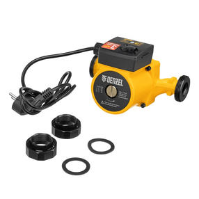 Циркуляционный насос Denzel CP25-4 99410 с кабелем длиной 1 м имеет монтажную длину 180 мм и обеспечивает напор до 4 м, максимальный объем перекачиваемой жидкости составляет 50 л/мин Устройство обеспечивает непрерывное движение горячей воды температурой до 110 °C по трубопроводу Насос позволит организовать эффективную систему теплоснабжения загородного дома Преимущества 3 режима работы — механический переключатель позволяет регулировать скорость движения теплоносителя, тем самым изменяя степень нагрева помещения в зависимости от температуры на улице или предпочтений пользователя Прочность — чугунный корпус устойчив к механическим повреждениям и выдерживает давление до 10 бар Надежность — двигатель с медной обмоткой устойчив к нагрузкам и стабильно работает длительное время Степень защиты IP54 — внутренние элементы надежно изолированы от пыли и брызг воды Универсальность — насос поставляется с комплектом переходных гаек, поэтому его можно устанавливать на трубы с разной резьбой. 3 390,00 ₽ / шт