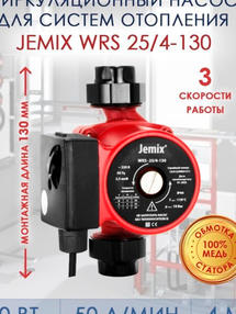 WRS-25/4-130 Насос циркуляционный JEMIX для отопления, 3-х скоростной, мощность 70/50/35 Вт