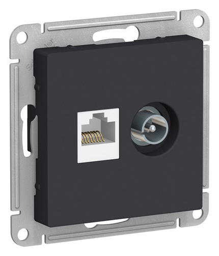 Розетка компьютерная+телевизионная 2-м AtlasDesign RJ45 кат.5Е+TV механизм карбон. SE ATN001089
