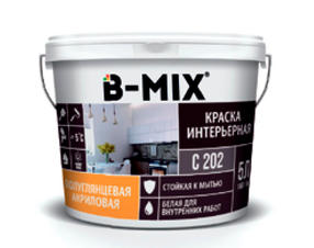 Краска интерьерная износостойкая полуглянцевая акриловая B-MIX 5 л С202