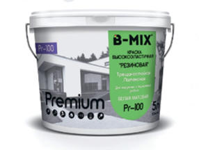 Краска B-MIX латексная, высокоэластичная резиновая, для нар. и вн. работ матовая 9 л ПР-100