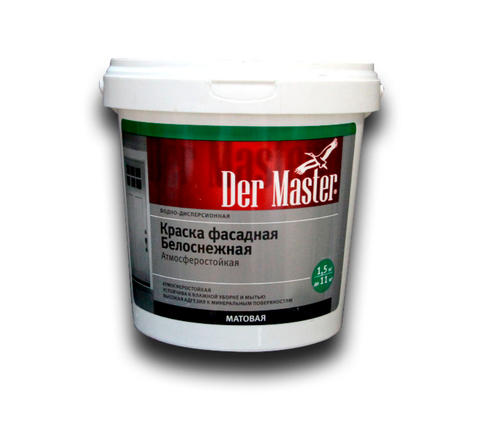 Краска фасадная атмосферостойкая белоснежная Der Master 1.5кг