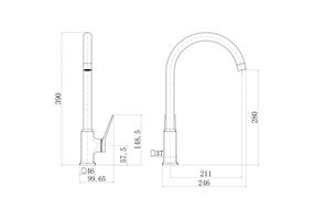 A4086 смеситель для кухни, H=390 мм хром латунь картридж D=35 мм излив H=280 мм гибкая подводка: 450 мм в комплекте крепёж: гайка Цвет: Хром Материал: латунь Тип изделия: смеситель для кухни ДxШxВ: 385x210x50 мм Вес: 1210 г 5 383,00 ₽ / шт