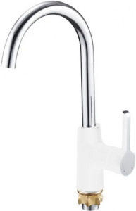 ZOK4-A036PW - однорычажный смеситель для кухонной мойки в современном стиле, оснащенный высоким поворотным изливом с белым матовым покрытием и углом вращения 360°. Корпус изготовлен из высококачественной латуни (Lt) по технологии литья в песчаную форму, что гарантирует прочность, долговечность и устойчивость к коррозии. Комбинированное покрытие — хромированное основание и белый матовый излив — создает надежную защиту от воздействия бытовой химии, сохраняет эстетичный внешний вид и легко чистится. Монтаж: Настольный (на мойку или столешницу), на одно отверстие, тип крепления - гайка (корона). Подводка в комплекте: гибкая 1/2″. Плавность регулировки напора и температуры воды обеспечивает надежный керамический картридж. 5 900,00 ₽ / шт