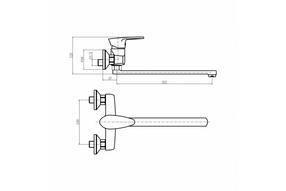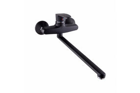 PL4605-7 смеситель настенный для умывальника/мойки чёрный/хром корпус: ABS пластик крашеный в массе внутр. часть соприкасающаяся с водой: ABS пластик картридж D=35 мм излив: L=320 мм, поворотный, SUS304, чёрный установочный комплект + 2 700,00 ₽ / шт