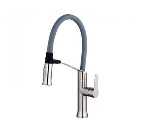 A54501-12 смеситель для кухни с магнитным фиксатором излива, H=462 мм сатин/серый сталь SUS304 картридж D=35 мм силиконовый гибкий излив H=174 мм насадка излива с клавишей 2 режима на магните гибкая подводка: 450 мм в комплекте крепёж: гайка 11 400,00 ₽ / шт