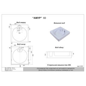 Умывальник Амур 60" для установки над стиральной машиной с креплением (597*595*103)