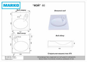 Мэй 600 (над стиральной машиной) белый мрамор