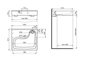 Умывальник SANTEK Клио 60*51 с кронштейном для установки над стиральной машиной (Ш630*Г515*В140)