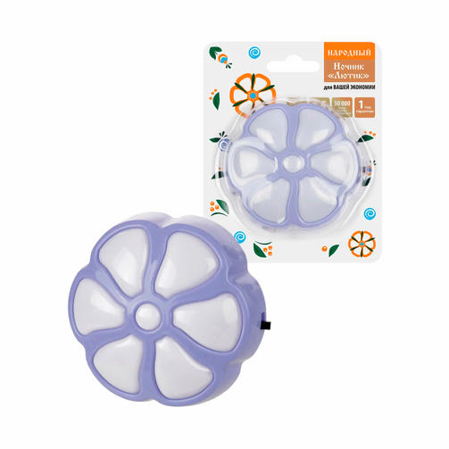 Ночник "Лютик" с выключателем, 0,5 Вт, фиолетовый, 220В Народный 290,00 ₽ / шт