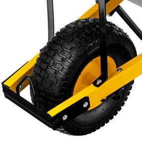 Усиленная строительная тачка Denzel 68999 с колесом 15 х 6,00-6, грузоподъемностью до 230 кг, с объемом кузова 140 л, предназначена для профессионального использования на строительной площадке и в сельском хозяйстве. С ее помощью можно транспортировать строительные грузы и различные сыпучие материалы. Преимущества Прочная конструкция — рама с профилем 50 х 25 мм и толщиной стенок 1,2 мм, а также широкие опоры, усиленная перемычка и мощная дуга выдерживают интенсивные нагрузки. Надежный кузов — завальцованные бортики повышают прочность и ударостойкость его верхней части. Защита от коррозии — кузов и рама покрыты порошковой эмалью. Устойчивость — тачка не проваливается в грунт благодаря широкому пневмоколесу и подпятникам на ножках. Возможность фронтальной разгрузки — на колесе предусмотрена специальная дуга для упора. Удобное перемещение — колесо установлено на два шариковых подшипника, что обеспечивает высокую проходимость тачки. Специальная петля на раме — возможна буксировка тачки вторым человеком при необходимости. 10 300,00 ₽ / шт