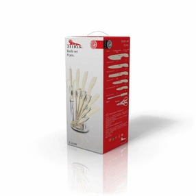 Набор ножей из 8 предметов. Лезвия ножей изготовлены из высококачественной нержавеющей стали с антибактериальным покрытием и имеют безупречную заточку и оптимальную жесткость. Анатомическая форма ручек с покрытием "soft-touch", комфортно лежит в руке и обеспечивает удобство и безопасность работы. В набор входят: Нож поварской – 20 см/1,5 мм Нож разделочный – 20 см/1,5 мм Нож для хлеба – 20 см/1,5 мм Нож универсальный –13 см/1,2 мм Нож для овощей – 9 см/1,2 мм Мусат Ножницы Складная подставка из акрила Подарочная упаковка с пластиковой ручкой 3 388,00 ₽ / шт