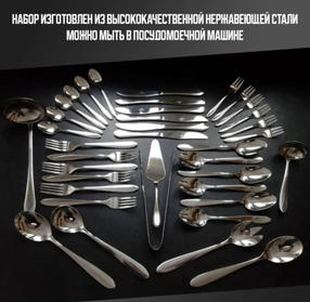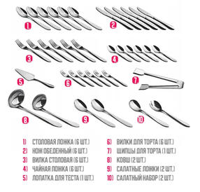 Столовый набор 38 пр., НЖС, Ножи 6 шт, стол.ложка 6 шт, вилки 6 шт, чайная ложка 6шт, вилки для торта 6шт, 2шт. большие ложки, 2 шт. салатная ложка, 1 шт. щипцы, 2 шт. половник, 1 шт. лопатка для торта, упак.: цв.кор. 4 450,00 ₽ / шт