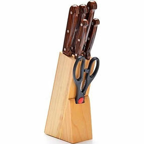 В набор MAYER&BOCH входит 5 ножей, ножницы, и деревянная подставка. При изготовлении ножей используется высокоуглеродистая закаленная сталь, которая обеспечивает высокие режущие свойства кромки клинка. Сечение клинков ножей - клинообразно, что позволяет режущей кромке продолжительное время оставаться острой. Эргономичные рукоятки ножей, изготовленные из качественного пластика, обеспечивают безопасную работу и комфортное положение в руке. Предметы набора компактно размещаются в стильной деревянной подставке, с помощью которой вы сможете хранить все ножи в одном месте. Физические и практические свойства данного материала гарантируют длительный эксплуатационный период. Такой набор станет великолепным подарком и органично впишется в любой кухонный интерьер. Подходит для мытья в посудомоечной машине. 1 167,32 ₽ / шт