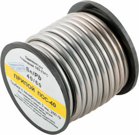 Припой ПОС 40 с канифолью, проволока диаметр 3 мм, на катушке, 250 гр. 60594