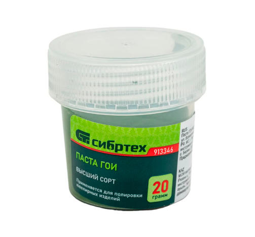 Паста ГОИ №3 Сибртех 913346, 20 гр. в банке, используется как для ручной полировки тканью, так и для машинной с помощью дрели или шлифмашины со специальной насадкой. Универсальная паста подходит для работы с ювелирными изделиями, металлом, пластиком и стеклом. Благодаря ей можно защитить поверхности от механических повреждений, исправить косметические дефекты и придать им зеркальный блеск. Преимущества Паста легко наносится, что повышает комфорт работы. Для удобства хранения и транспортировки паста продается в прозрачной пластиковой банке со стикером и крышкой. 20 г пасты в банке хватит на долгое использование. 100,00 ₽ / шт