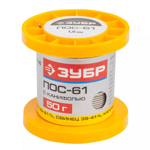 ЗУБР 50 г, 1 мм, трубка, ПОС 61, припой (55450-050-10C)