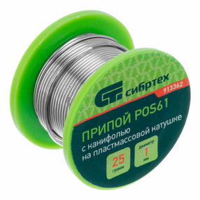 Припой с канифолью, D 1 мм, 50 г, POS61, на пластмассовой катушке Сибртех 913365
