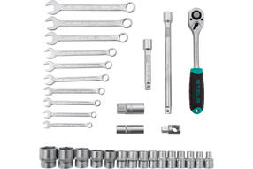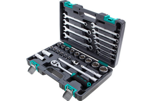 Набор инструментов STELS 31 предмет 14102 - это комплект необходимых для обслуживания и ремонта автомобиля изделий, производство которых происходило под контролем и в соответствии с международными стандартами. В качестве материала для рабочих частей головок и ключей использована хромованадиевая сталь. Кейс выполнен из противоударного пластика, обладает ручкой и защелками. В наборе 31 инструмент. 8 300,00 ₽ / шт