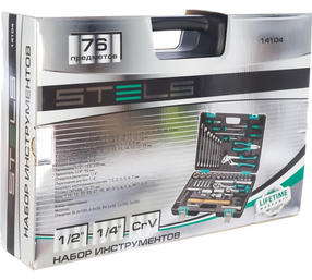 Набор инструментов, 1/2, 1/4, CrV, пластиковый кейс, 76 предметов Stels 14104