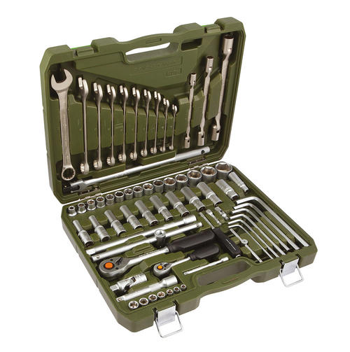 Обновлённая раскладка и дизайн популярного набора из 64 предметов, объединившего в себе два типоразмера торцевых головок под 1/4" и 1/2", а также комбинированные, шарнирные и шестигранные ключи. Данный состав позволяет использовать набор для выполнения широкого спектра слесарных и бытовых работ. Набор инструментов 64 предмета в удобном чемодане подходит для ремонта автомобиля, мотоцикла и другой техники в гараже, мастерской, поездке или автопутешествии. Размеры кейса: 400×370×90 мм Вес: 9,4 кг 14 090,00 ₽ / шт