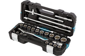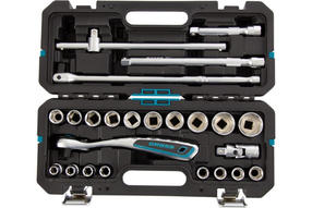 Набор инструментов Gross 14147 из стали CrV используется для закручивания и откручивания резьбового крепежа и включает 24 предмета, в том числе ключ-трещотку со 120 зубьями и присоединительным квадратом 1/2"". Комплект адаптирован для работы в труднодоступных местах — для этого предусмотрены удлинители, воротки и карданный шарнир. Набор подойдет для самостоятельного ремонта автомобилей и выполнения бытовых работ. 10 000,00 ₽ / шт