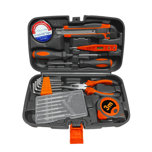 Набор ручных инструментов Edon MHS-22 представляет собой комплект из 22 предметов, предназначенных для выполнения различных ремонтных, монтажных и слесарных работ. Комплектация: - отвертка - 2 шт.; - монтажный нож - 1 шт.; - индикаторная отвертка-пробник - 1 шт.; - изолента - 1 шт.; - рулетка 3 м. - 1 шт.; - длинногубцы 6’’ - 1 шт.; - набор отверток для точных работ - 6 шт.; - набор ключей-шестигранников - 8 шт.; - пластиковый кейс - 1 шт. Габаритные размеры: 25x15x7 см.; Вес брутто: 1 кг. (Вес с упаковкой). 1 500,00 ₽ / шт