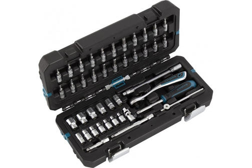 Набор инструментов 42 пред. GROSS, 120 зубьев, CrV, 1/4 14146 разработан специально для автомехаников. Предназначен для слесарно-монтажных работ с резьбовыми соединениями. Высококачественная хромованадиевая сталь. Трещоточный механизм 120 зубьев дает возможность работы в труднодоступных местах так как шаг храпового механизма трещотки всего 3 градуса Поставляется в пластиковом футляре, где каждый предмет размещен отдельно и разложен по размеру. В таком виде набор удобен для использования и экономит время на поиск необходимого инструмента. 6 300,00 ₽ / шт