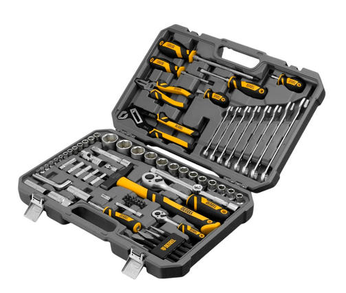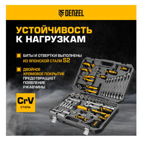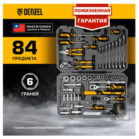 Набор инструментов, 1/2", 1/4", CrV, S2, пластиковый кейс, 84 предмета Denzel 15802