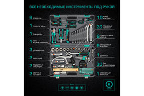 Набор инструментов STELS 98 предметов 14111 пригодится для обслуживания автомобиля, а также ремонта дома и дачи. Все инструменты комплекта изготовлены из хромованадиевой стали, легкой, но высокопрочной в использовании. Биты и отвертки выполнены из стали марки S2. Рукоятки из двухкомпонентного материала не скользят в руке при длительной работе. Кейс позволяет компактно хранить инструменты, обладает защелками и ручкой. 16 400,00 ₽ / шт