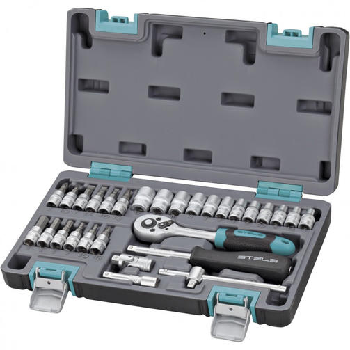 Наборы инструмента торговой марки STELS разработаны специально для автолюбителей и центров технического обслуживания. Каждый этап производства контролируется в соответствии с международными стандартами. Головки и комбинированные ключи изготовлены из хромованадиевой стали, придающей инструменту исключительную твердость в сочетании с легкостью. Биты, биты-вставки и отвёртки производятся из стали S2, улучшающей свойства инструмента. Набор комплектуется трещотками с реверсом и быстрым сбросом, трещоточный механизм имеет 72 зуба и обеспечивает исключительную мягкость и плавность в работе. Шаг зуба 5 град. Все наборы упакованы в кейс, изготовленный из жесткого противоударного пластика, с металлическими застёжками. Наборы инструмента STELS пригодятся вам не только в автомобиле. С их помощью можно проводить бытовой ремонт дома и на даче, ремонт бытовых конструкций и садовой техники. На все наборы инструментов STELS предоставляется пожизненная гарантия (подробнее об условиях гарантии вы можете узнать из гарантийного талона). Состав набора: Ключ трещоточный 1/4. Головки торцевые 1/4: 4, 4.5, 5, 5.5, 6, 7, 8, 9, 10, 11, 12, 13. Кардан 1/4. Удлинители 1/4: 50 мм и 100 мм. Отвертка-держатель 1/4. Вороток Т-образный 1/4. Головки торцевые 1/4 со вставкой: H3, H4, H5, H6, H8, SL4, SL5.5, SL7, PH1, PH2, PZ1, PZ2. 3 300,00 ₽ / шт