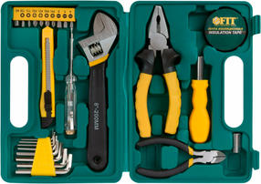 Набор инструмента в пластмассовом кейсе 26 шт FIT IT 65125 включает в себя необходимые инструменты для выполнения различных ремонтных или сборочных работ. Изделия, входящие в данный набор, обладают повышенной прочностью. Они полностью изготовлены из качественной стали. Отвертки и губцевый инструмент оснащены эргономичными рукоятками из пластика для более удобного рабочего процесса. Особенности набора инструментов FIT 65125 Удобство хранения и транспортировки Все компоненты из набора инструмента 26 шт FIT IT 65125 размещены в удобном закрывающемся кейсе из пластика с отдельными ложементами. 2 983,00 ₽ / шт