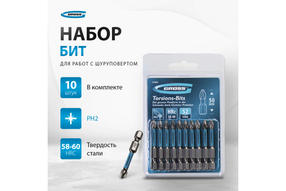Набор торсионных бит PH2 x 50 мм Gross 11493, 10 шт., предназначен для монтажа и демонтажа резьбовых соединений с помощью ударного шуруповерта. Он незаменим в строительных, слесарных и монтажных работах, в автосервисах, при проведении ремонта в доме. Торсионная зона способна пружинить, за счет чего она частично амортизирует тангенциальный удар от шуруповерта. Такое решение позволяет равномерно распределить нагрузку по бите и избежать поломки шлица. 129,00 ₽ / шт
