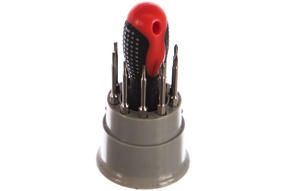 Отвертка для точных работ Matrix Fusion 11582 с 3-х компонентной рукояткой, с насадками, — это набор из 11 предметов в пластиковом пенале, который используется для ремонта электротехники, очков, мобильных телефонов, ноутбуков и т.д. Набор пригодится профессиональным мастерам. 10 удлиненных бит с зауженным профилем обеспечивают возможность работы в углублениях. Преимущества Стержень и биты выполнены из легированной стали CrV, закаленной до твердости 50-55 HRC, что придает им высокую прочность и надежность. Мощный магнит на присоединительном шестиграннике гарантирует надежность удержания бит. Намагниченный наконечник бит повышает удобство работы, позволяя одной рукой придерживать закрепляемую деталь. Трехкомпонентная рукоятка с подпальцевыми выемками и противоскользящим покрытием обеспечивает комфортную работу. Пластиковый пенал позволяет организовать безопасное хранение и транспортировку набора. Комплектация Пластиковый пенал - 1 шт, Отвертка трехкомпонентная для точных работ - 1 шт, Биты для точных работ: РН000, РН00, РН0, SL15, SL2, SL3, T4, T5, T6, T7 - 10 шт Тип упаковки пластиковый кейс 700,00 ₽ / шт