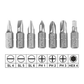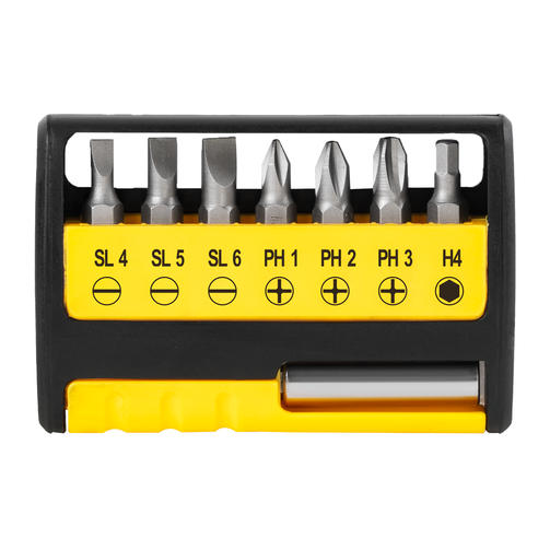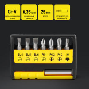 Комплект бит из 7 головок и держателя – это незаменимый инструмент при строительстве и ремонте. В наборе присутствуют плоские, крестовые и шестигранные биты. Для хранения набора бит предназначен компактный кейс. Биты, изготовленные из хромованадиевой стали, долговечны и надежны. 700,00 ₽ / шт