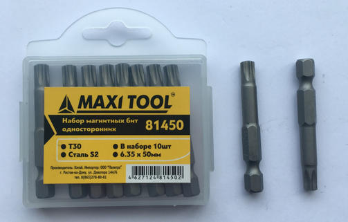 Биты 81450 1-но стор.закаленные 6,0х50мм Т30 сталь S2(10шт/120шт) MaxiTool цена за шт.