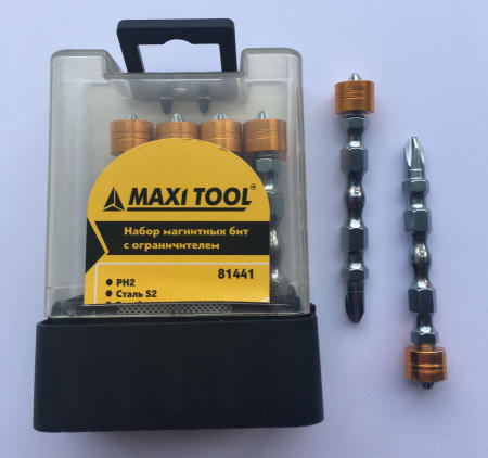 Биты 81441 2-стор с магн.держат.хром.дл/ГКЛ 6.35*65мм PH2/PH2 стальS2(10/уп) MaxiTool цена за шт.