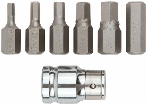 В наборе: 6 бит (длина 30 мм) из хром-ванадиевой стали (Н4; Н5; Н6; Н8; Н10; Н12) + адаптер с воротка на биту с посадочным диаметром 10 мм. Упаковка: коробка с подвесом. Производитель - FIT, Штрихкод - 4660078021701, Код - 57807, Страна происхождения - китай, Типоразмер - 7 шт. CrV, Длина - 170мм, Ширина - 50мм, Высота - 25мм, ВесБрутто - 184г 510,00 ₽ / шт